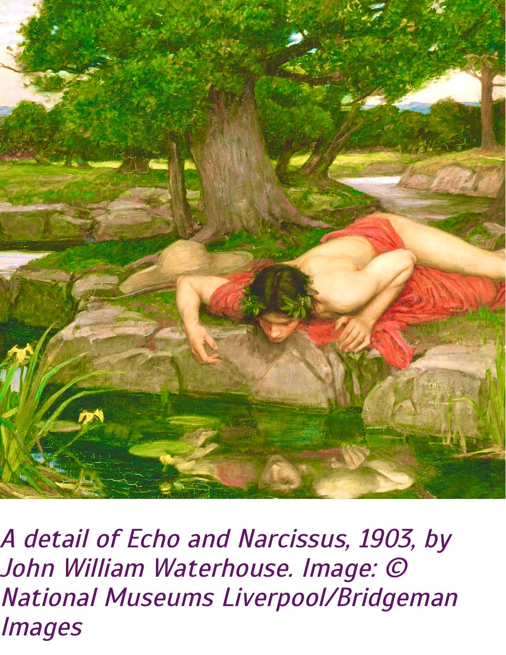 The drooping flowers that characterise most daffodils are said to represent Narcissus bending over to catch his reflection in a pool of water.